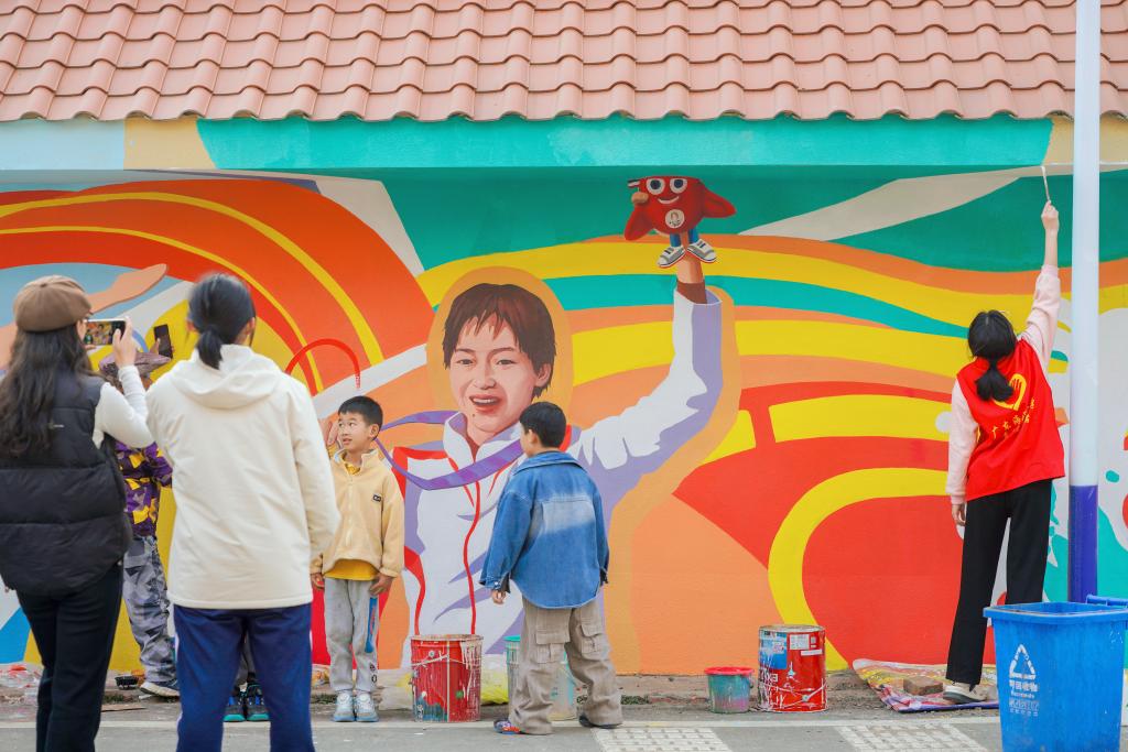 活动前夕,校地领导带领麻章镇和区教育、文旅等部门多次到现场调研,协调沟通,利用该村的历史沿革和湛江“跳水之乡”的深厚底蕴,结合当地特色种养产业,进行美丽乡村建设规划。活动期间,突击队员们挥毫泼墨,以全红婵的跳水瞬间为灵感,在迈合村小学的外墙上创作了一幅幅栩栩如生的墙绘。这些画作不仅有展现全红婵“水花消失术”的飒爽英姿,还有富有湛江本地特色、乡土气息的金鲳鱼、国宝红树林、中华白海豚、湖光岩世界地质公园……为迈合村增添了一道亮丽的风景线,墙绘作品得到了村民的一致好评,也吸引了众多游客前来驻足观赏、拍照打卡。