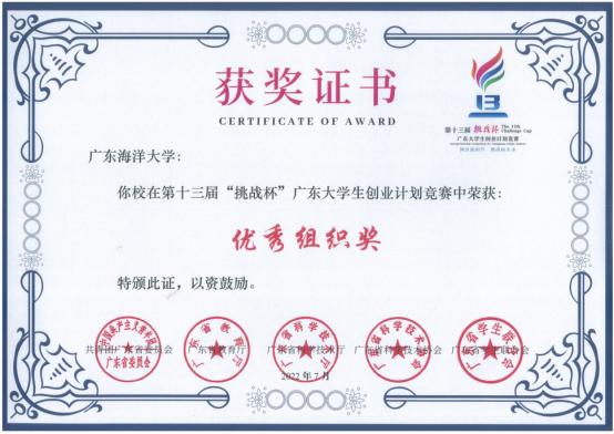 近日,共青团广东省委员会颁发第十三届“挑战杯”广东大学生创业计划竞赛荣誉证书,英国上市公司365荣获“优秀组织奖”。