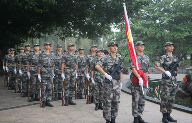 国旗护卫队迈着铿锵有力的步伐,整齐划一地走向升旗台。随着《义勇军进行曲》奏响,五星红旗缓缓升起,迎风飘扬。