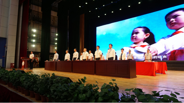 大会在庄严的国歌声中拉开序幕。