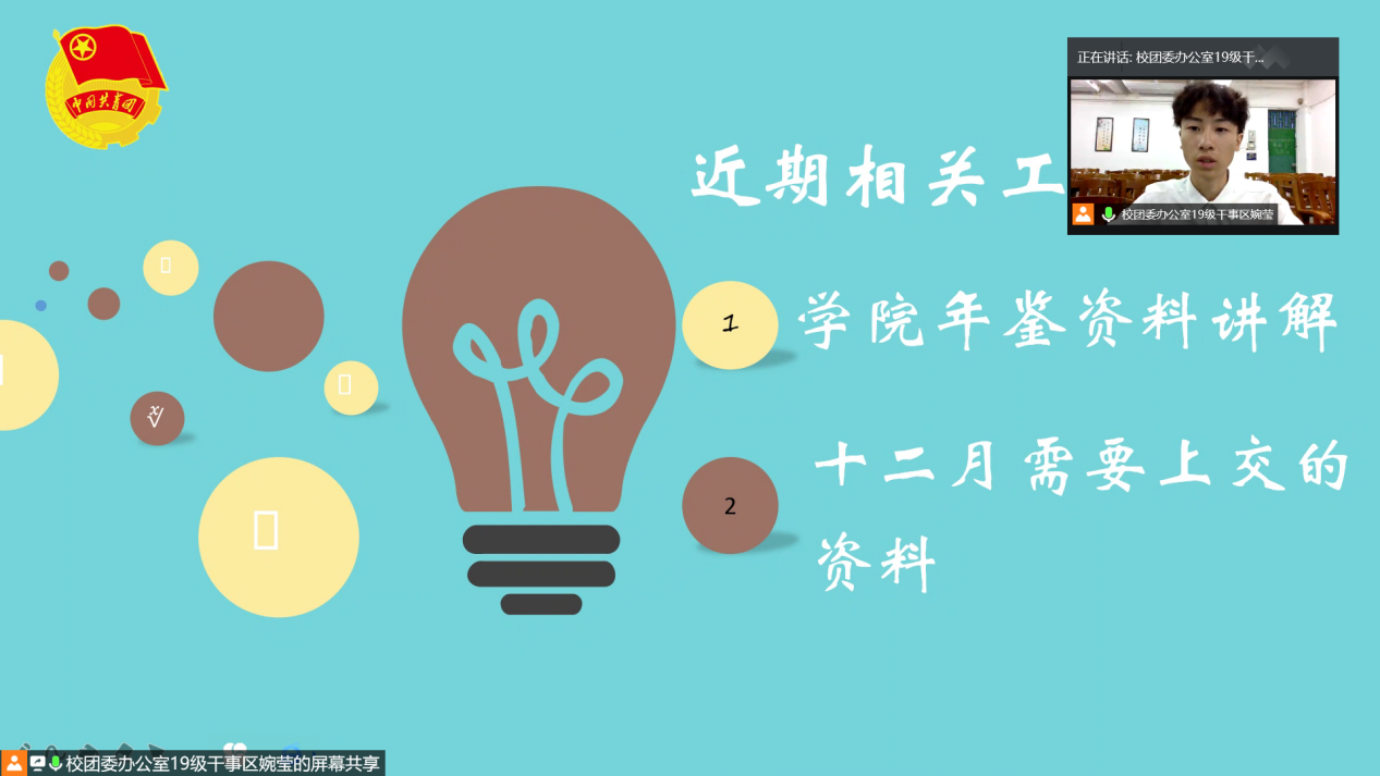 十一月已进入尾声,为总结本月各学院的工作,加强我部与各学院之间的沟通与交流,我部办公秘书系统十一月例会于11月28日(星期六)19:30-20:00在线上举行。本次例会由校英国上市公司365办公室19级干事姚子超主持。会议开始,由校英国上市公司365办公室19级干事姚子超考勤。