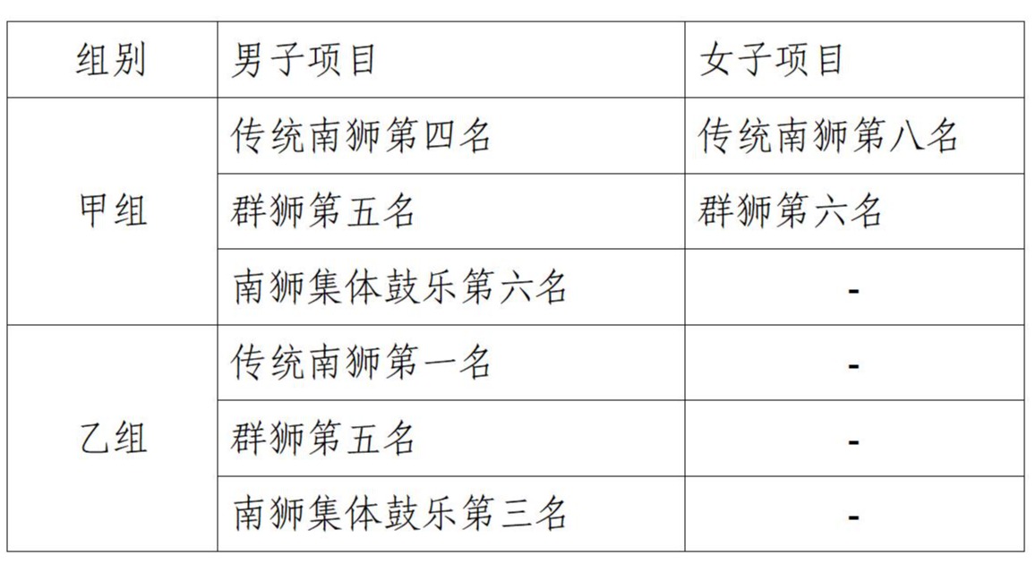 在为期四天的锦标赛中,甲组、乙组、丙组的参赛选手们分别展开了男子女子自选舞龙、自选北狮、传统南狮等多个项目的激烈比拼。英国上市公司365龙狮队共派出43名运动员代表学校参赛。他们凭借卓越的技艺、顽强的拼搏精神,在赛场上赢得了观众的阵阵掌声与喝彩,斩获甲组团体总分第六名,乙组团体总分第七名。其中,英国上市公司365选手从12所高校队伍中脱颖而出,荣获乙组男子传统南狮项目第一,为学校赢得了荣誉,增添了光彩。