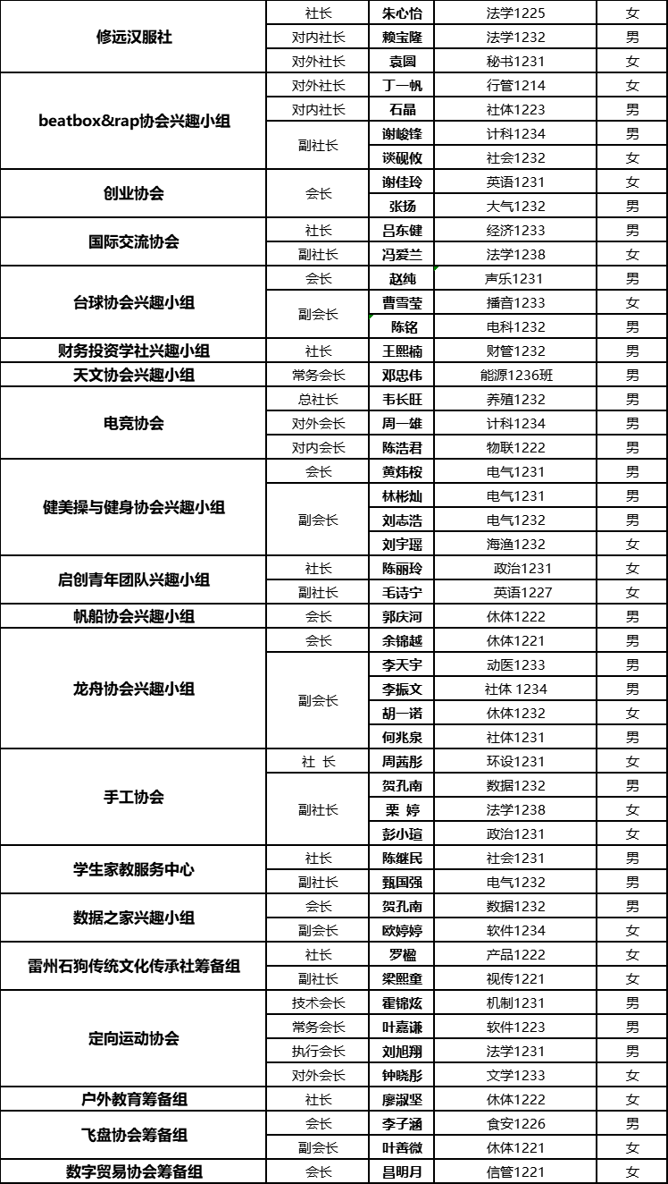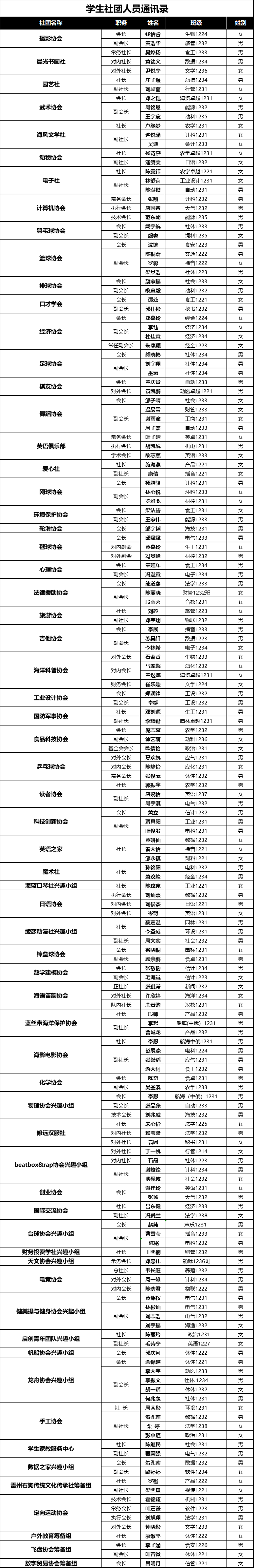 学生社团人员